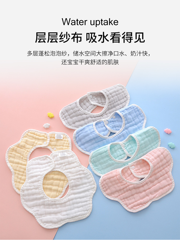 防水よだれかけ 新生児用花びら型よだれかけ 360 ° 回転式吐き戻し防止よだれかけ、吸水性のある綿ガーゼ