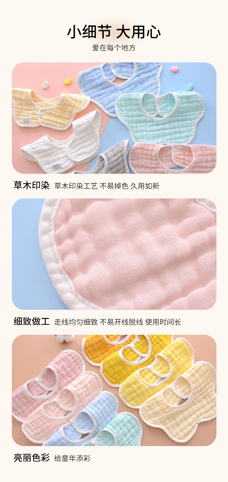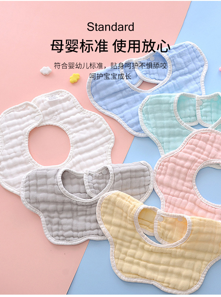 ベビーよだれかけ クラスA 8層ガーゼ 花びら型よだれかけ 漫画プリント 子供用よだれかけ 回転式サイドオープンよだれかけ