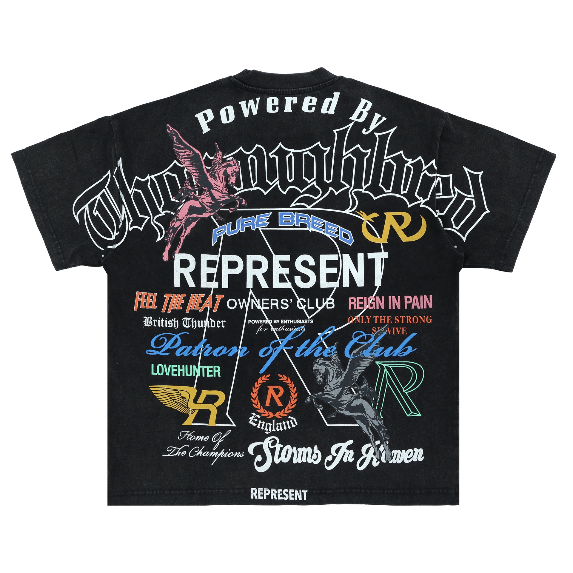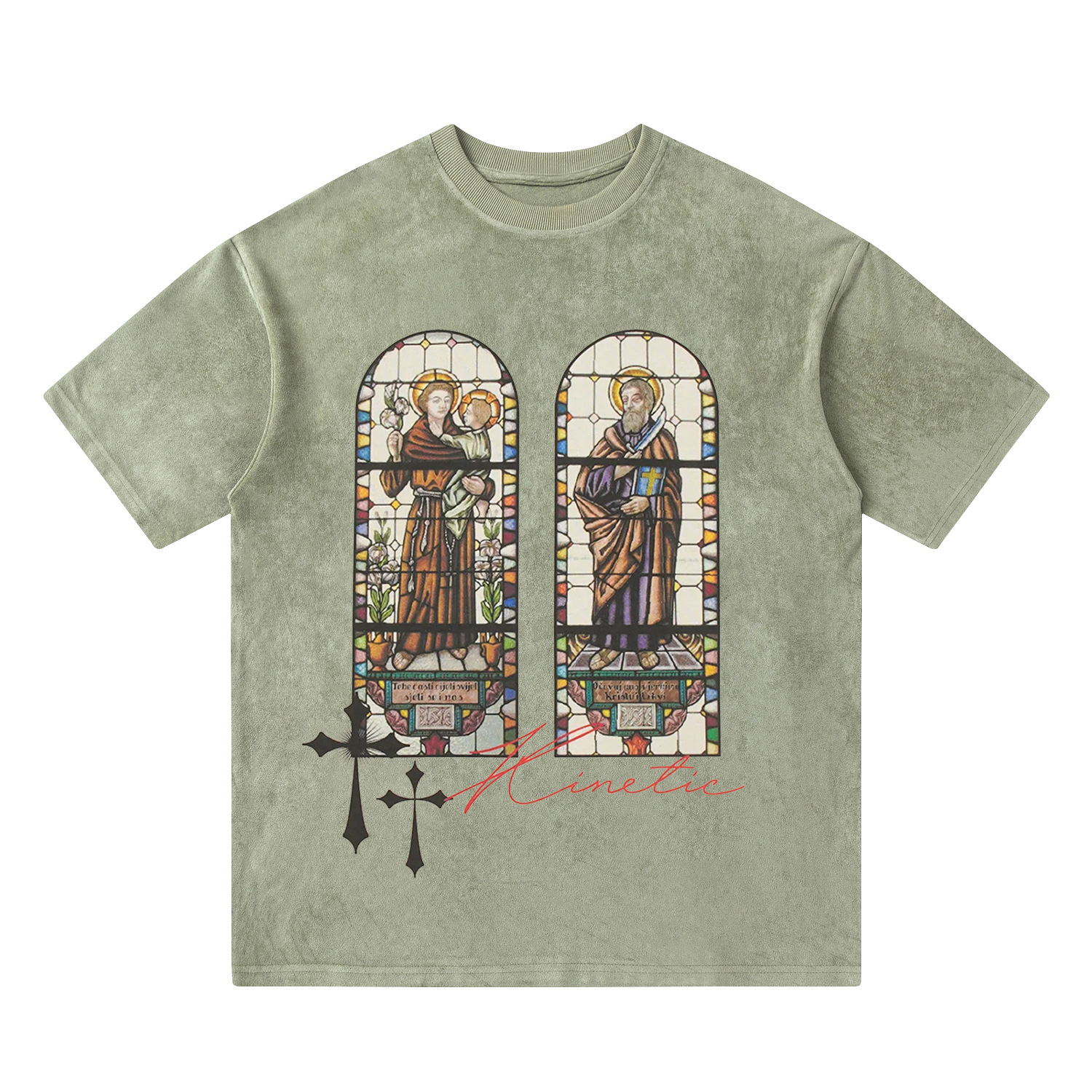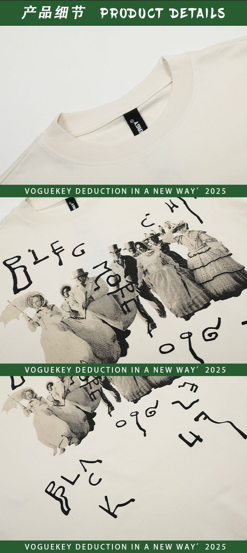 2025 新しい大きいサイズヘビーウェイトアメリカンレトロハイストリートウォッシュ加工プリント半袖 Tシャツメンズ夏ルーズクロスボーダー