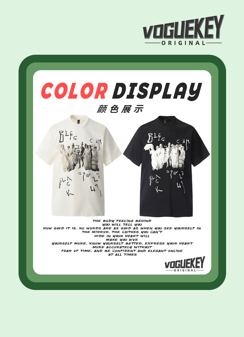 縦馳衣社2025新型夏のアメリカファッション人物プリント男女同金百合ゆるいカジュアルtシャツ