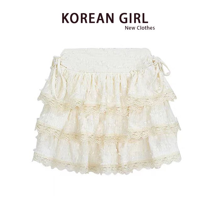 白色蕾丝蛋糕蓬蓬裙女甜美半身裙A字裙高腰显瘦防走光 芭蕾风短裙