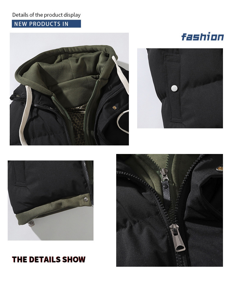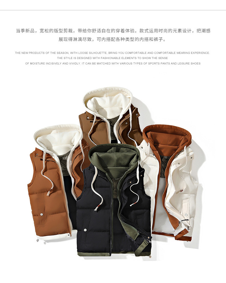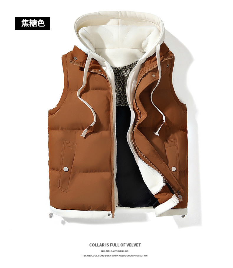 ティーンエイジャー向けグラフェンコットンベスト メンズ 秋冬 中学生向け ダブルレイヤー風 ゆったり カップル向け フード付きジャケット