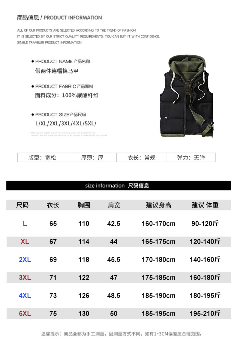 新款假两件棉马甲男士秋冬季流行潮牌保暖外穿工装马夹坎肩外套