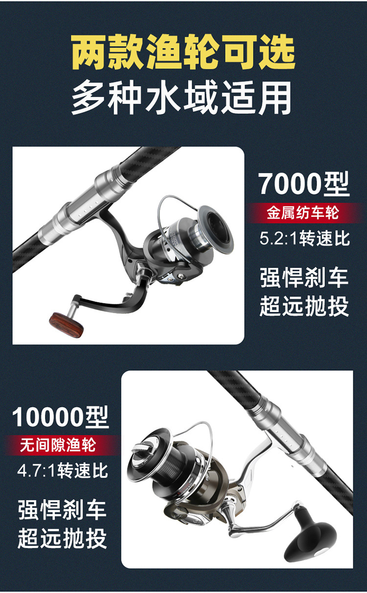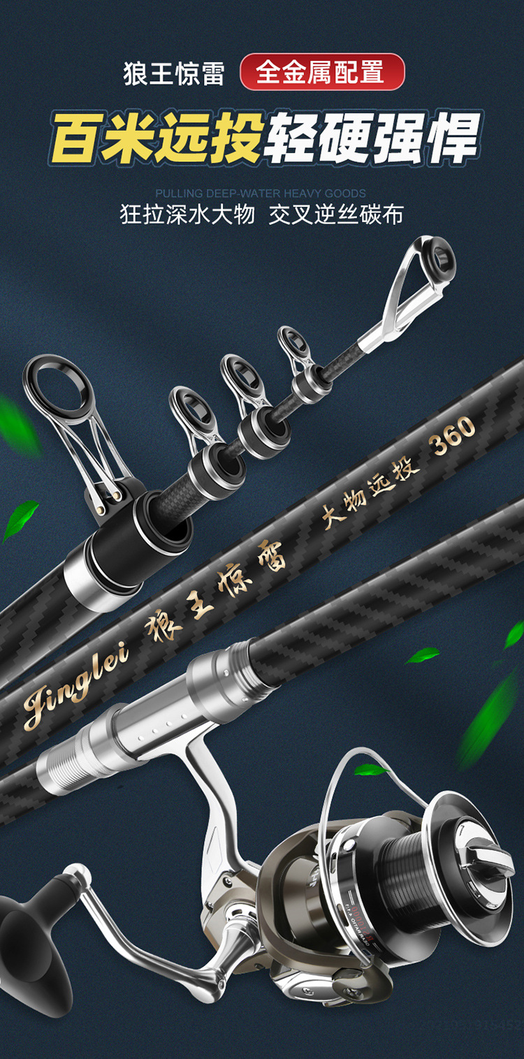 新品狼王惊雷釣竿炭素超硬長節遠投竿大物海竿投げ竿金属紡織車輪セット