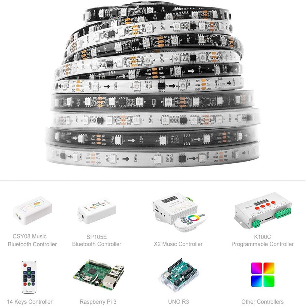 12V幻彩5050フルカラー灯条ws 2811プログラマブルLED走馬流水流光工事自慢のソフトランプ