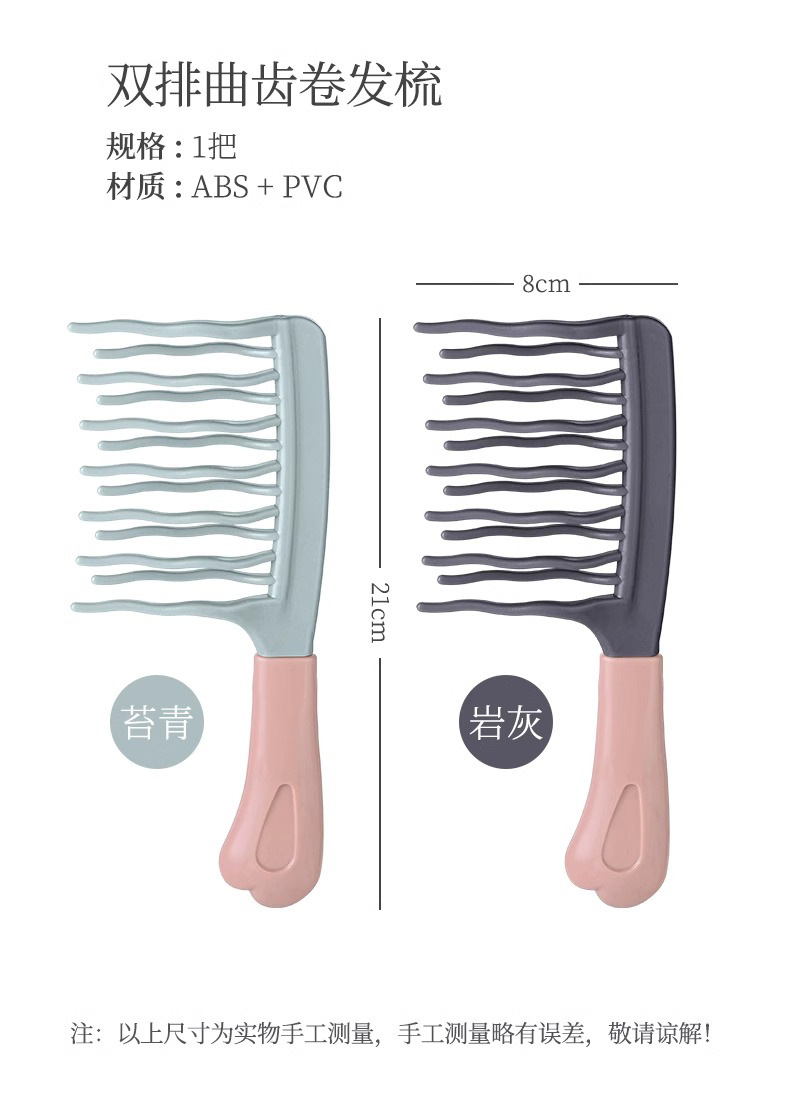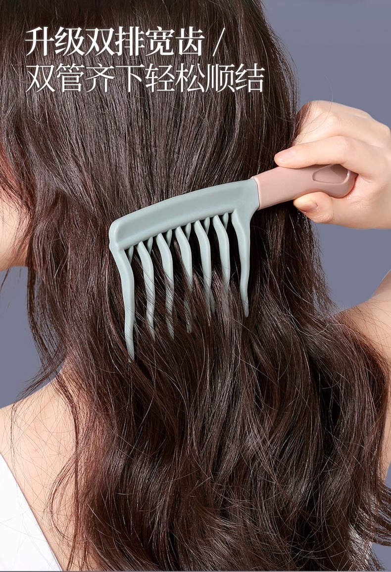 二重波状歯の巻き毛専用大歯コーム、パーマ、ロングヘア、厚い髪、静電気防止、巻き毛コーム、家庭用広歯コーム