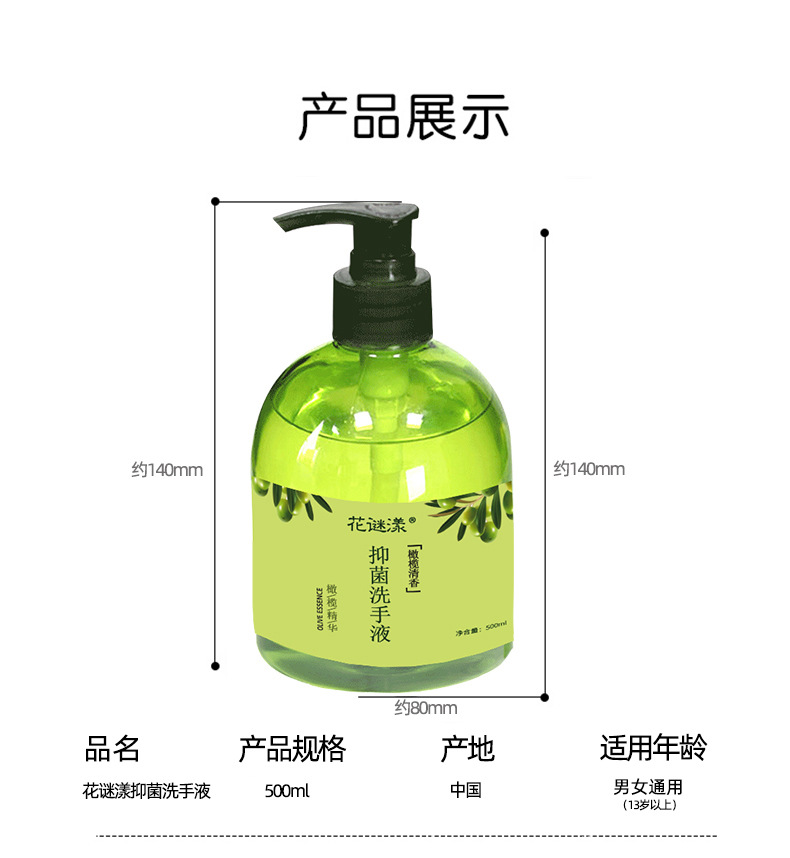 抗菌手洗い液オリーブ香型清潔清香留香抗菌瓶はポンプヘッドを押して便利で実費が安い