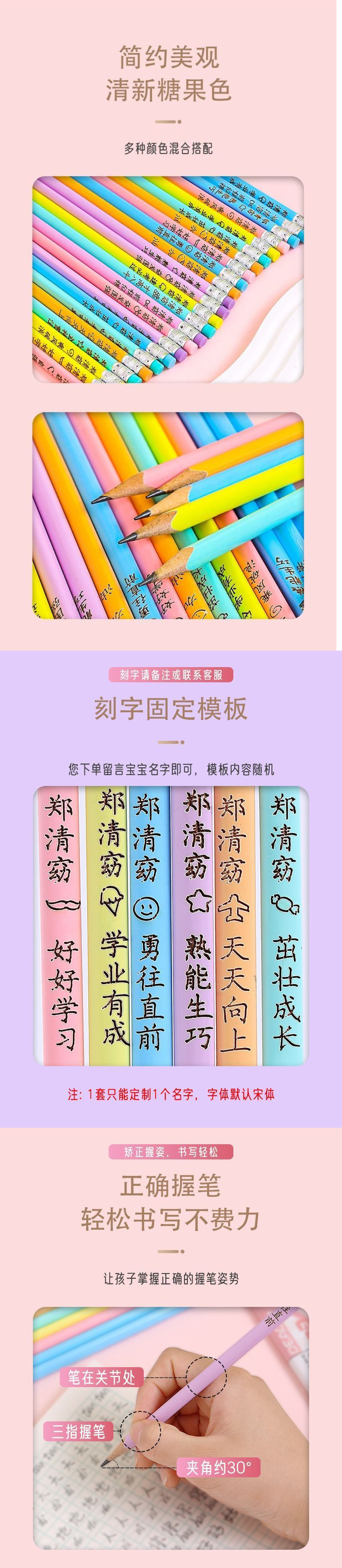 専属鉛筆彫刻名前穴鉛筆小学生専用hb無毒三角鉛筆幼稚園矯正握り姿