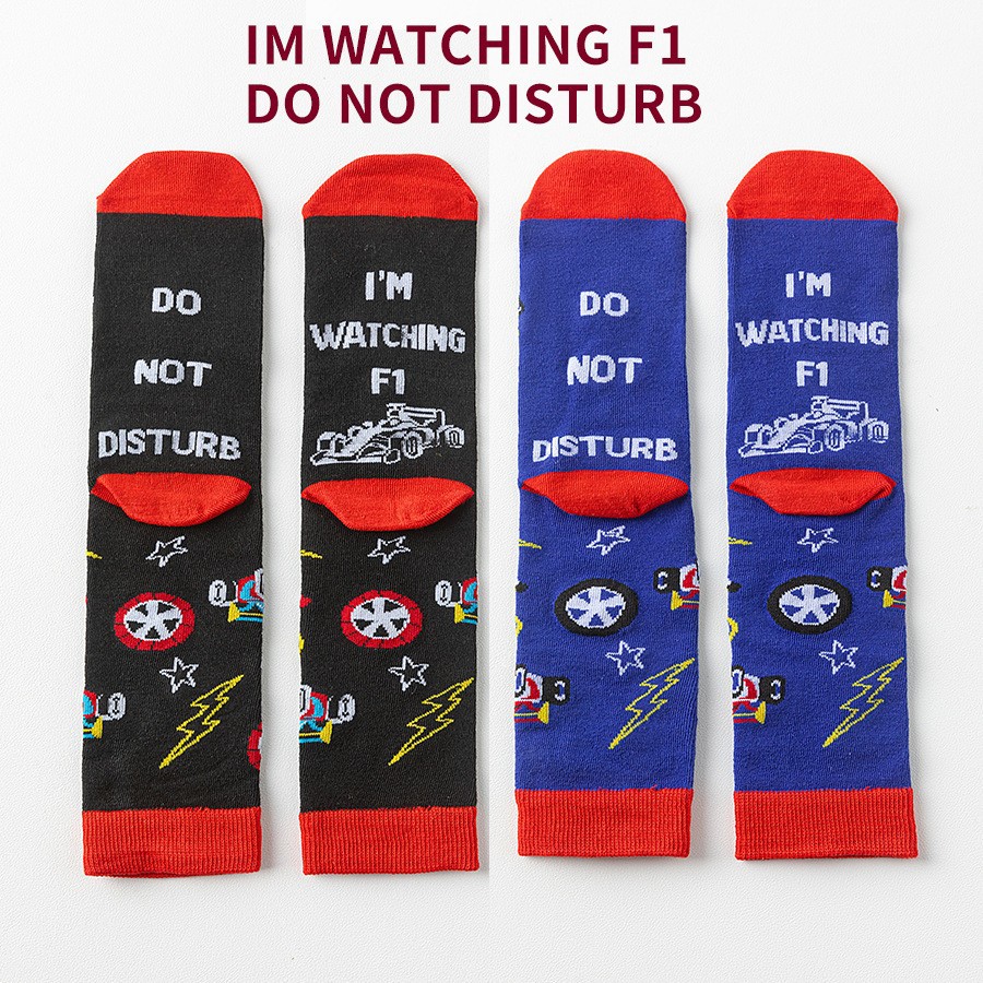 跨境网红卡通潮流袜子批发"I'M watching F1,Do Not Disturb"潮袜