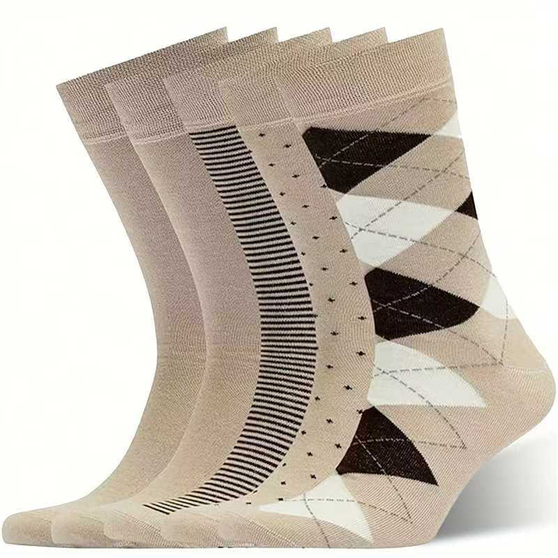 TEMU亚马逊袜子男款条纹菱格大码商务袜休闲长筒袜秋季复古中筒袜