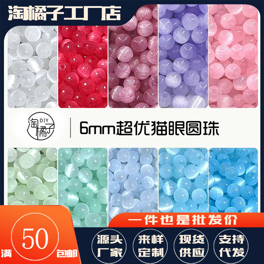 6mm超优猫眼米珠直孔圆珠玻璃珠子手工DIY串珠项链手链手机链散珠