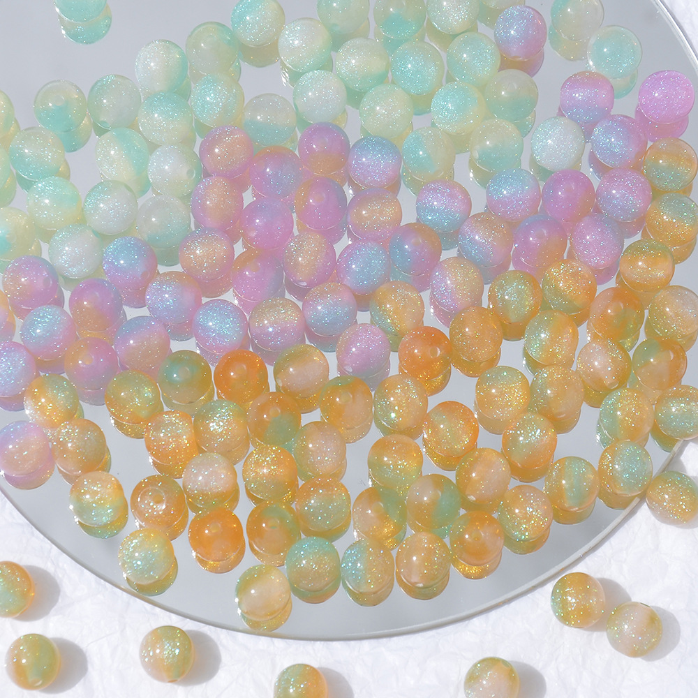 流光星空猫眼树脂直孔串珠圆珠珠子散珠 diy手链手机链饰品配件
