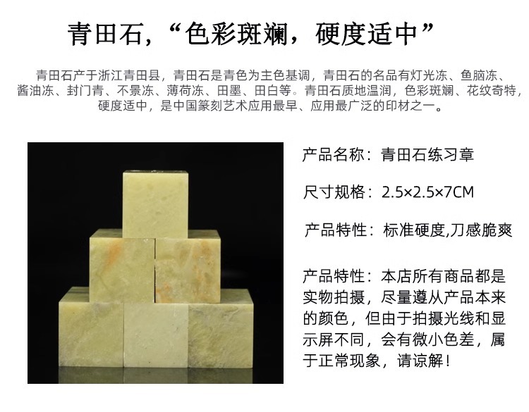 新鉱練習章篆刻青田石材印鑑初心者学生彫刻方章寿山石氏名閑章