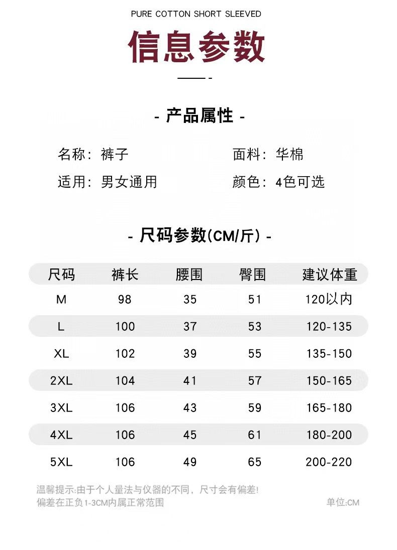 パンツのサイズ M,L,XL,2XL,3XL,4XL,5XL