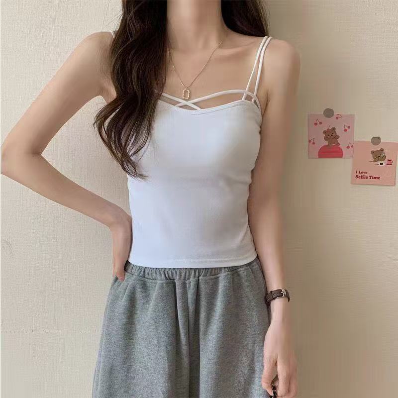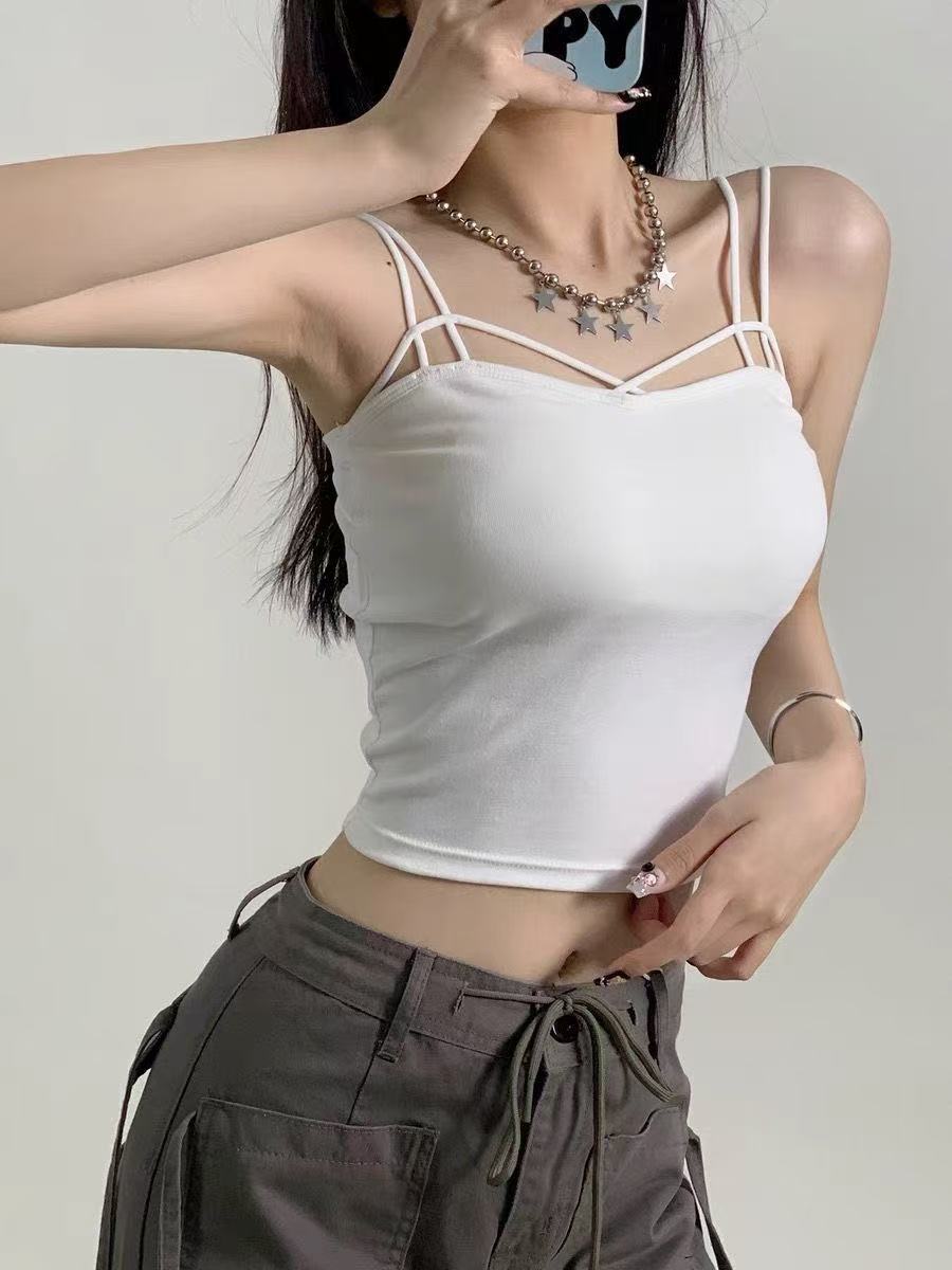 新しいカラーハンガー 702 # モーダル一体型ラテックスカップ美背中チューブトップサスペンダーミドル丈ボトムホワイトベスト