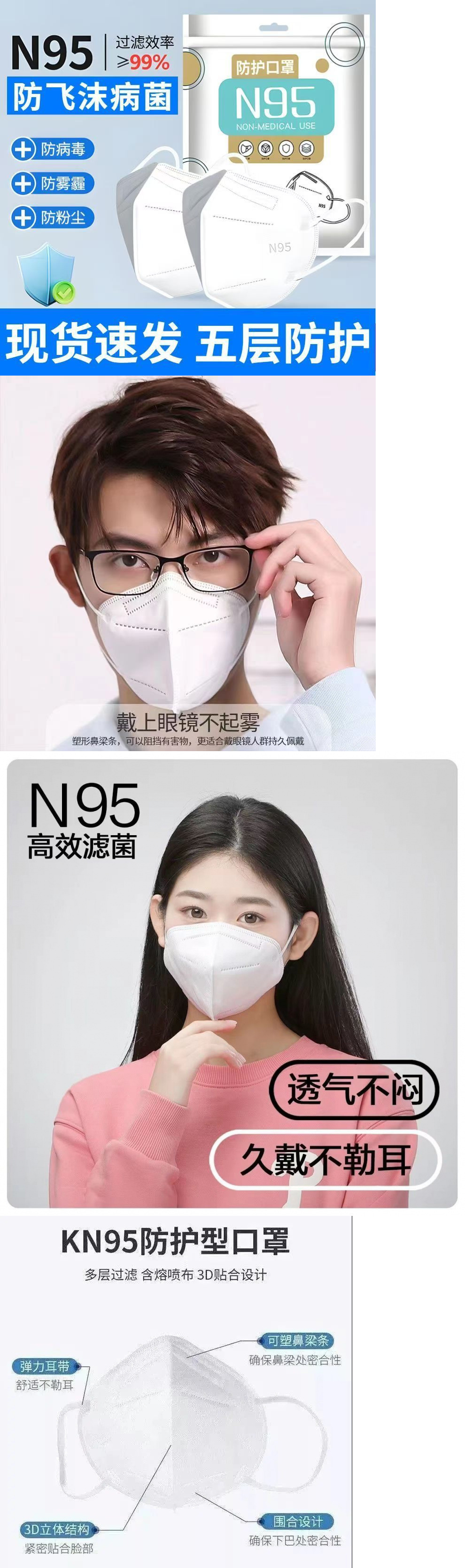 95マスク5層3立体防塵粉灰日焼け止め男女高颜値成人使い捨てマスク