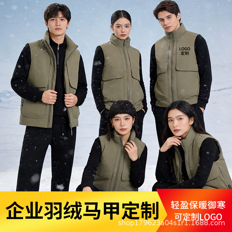 鸭绒户外工装工作服加厚跨境羽绒服背心外穿冬季企业羽绒马甲定制