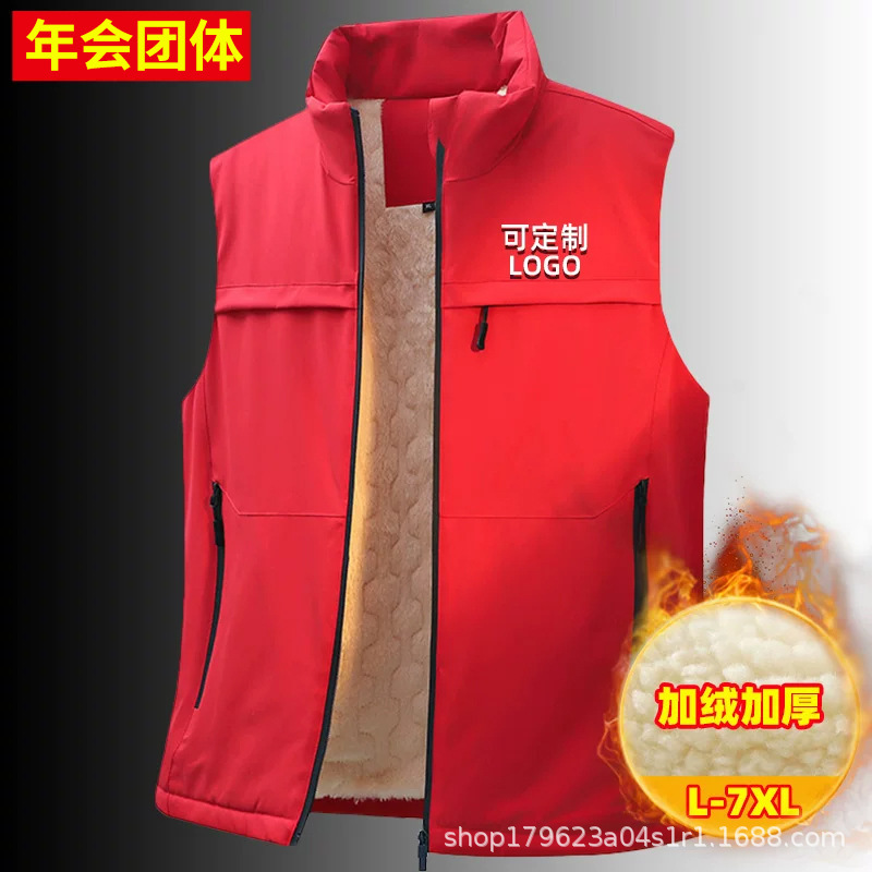 秋冬加绒加厚多口袋工作服马夹背心年会红色志愿者马甲定制印logo