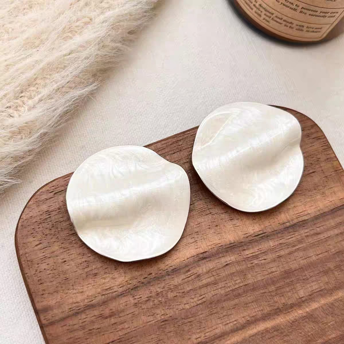 白蝶貝天然貝殻イヤリング氷ひび割れテクスチャハイエンドシンプルな楕円形気質イヤリング人気のイヤリング卸売