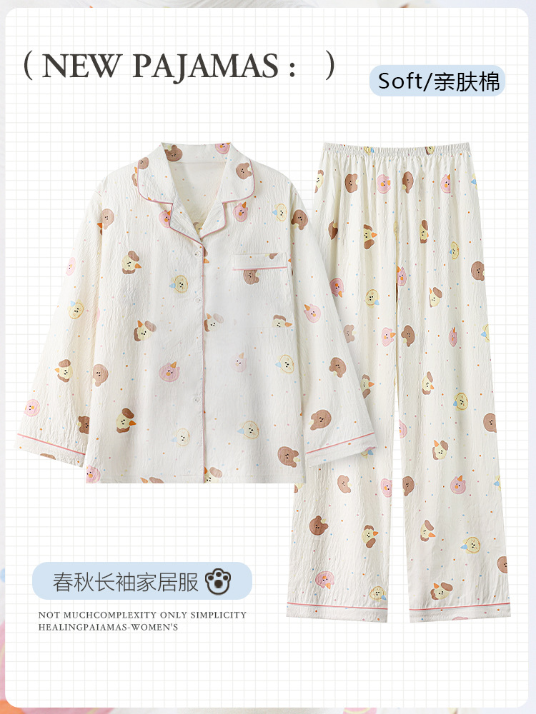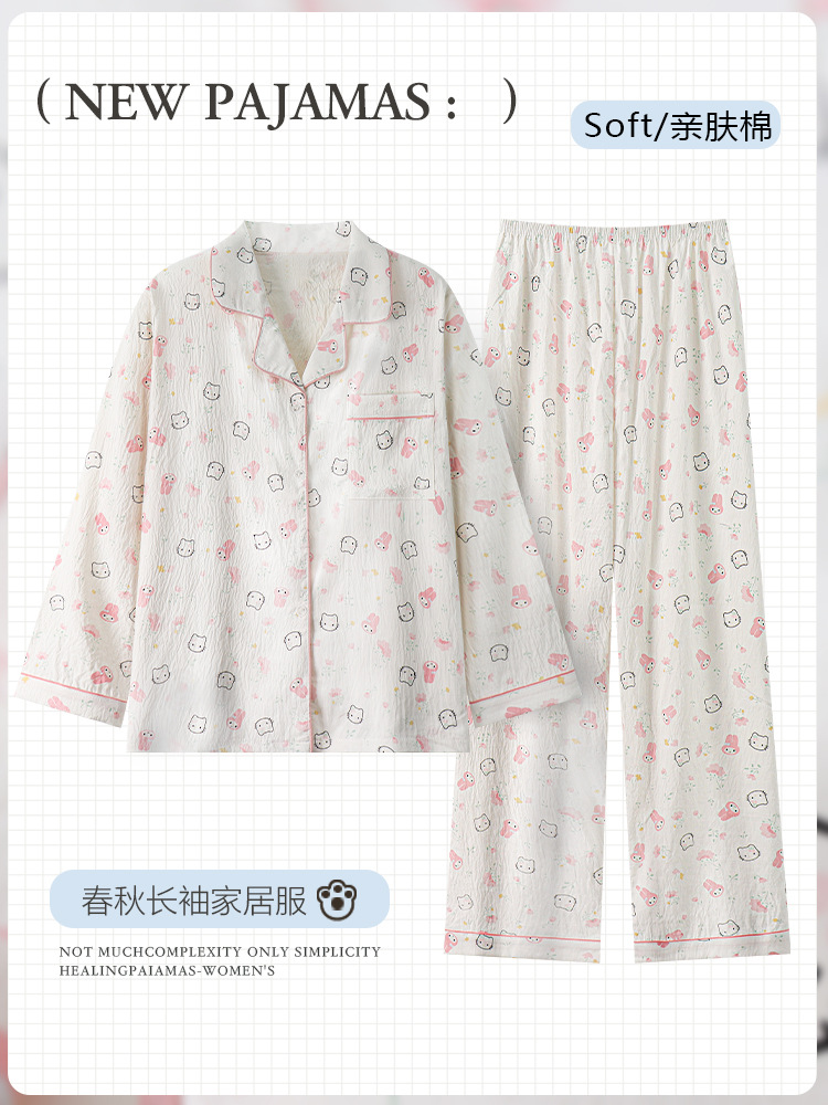工場直送の高級感のある女性用パジャマ、春秋用長袖長ズボン、外でも着られる甘い女子学生風ツーピースセット