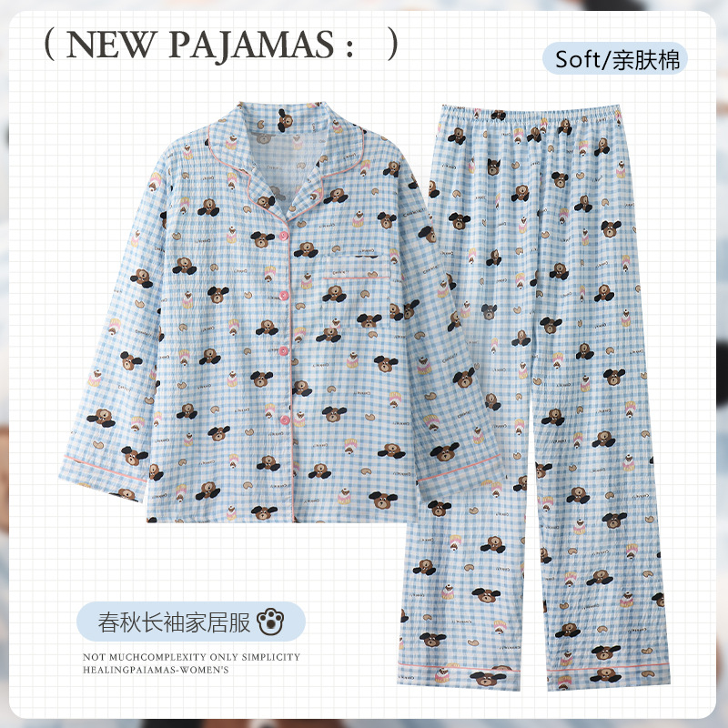工場直送のかわいい羊飼い犬柄パジャマ、女性用長袖、春と秋に最適、シンプルで人気のネット風、学生さんでも外で着られるホームウェア。
