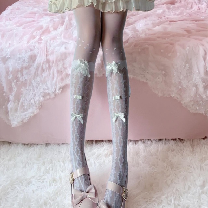 Lolita白ストッキング純欲高颜値蝶結び小衆甘美で可愛い日系セクシー美脚タイツ薄い