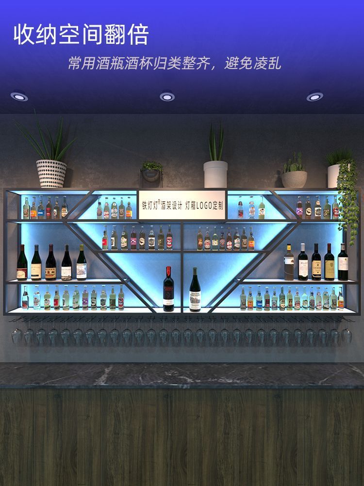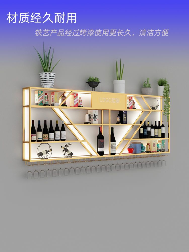 工業風バーのお酒の棚の壁掛け式のワインの棚は壁の鉄の芸の置物の棚に寄りかかって壁のレストランのお酒の展示棚を掛けます。
