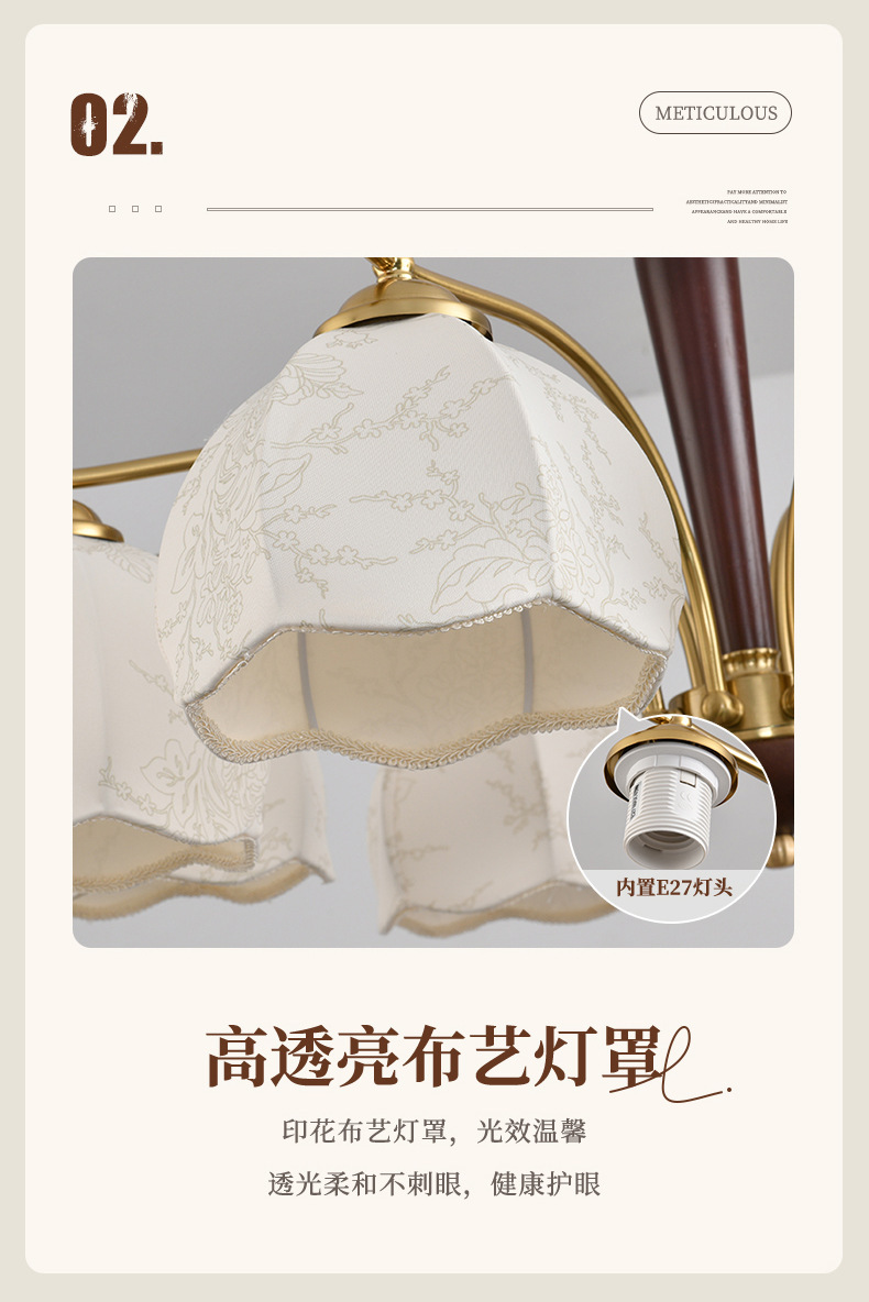 目を守るフランス式中古客間シャンデリア創意実木布芸レストラン寝室灯クラシックレトロ民宿シャンデリア