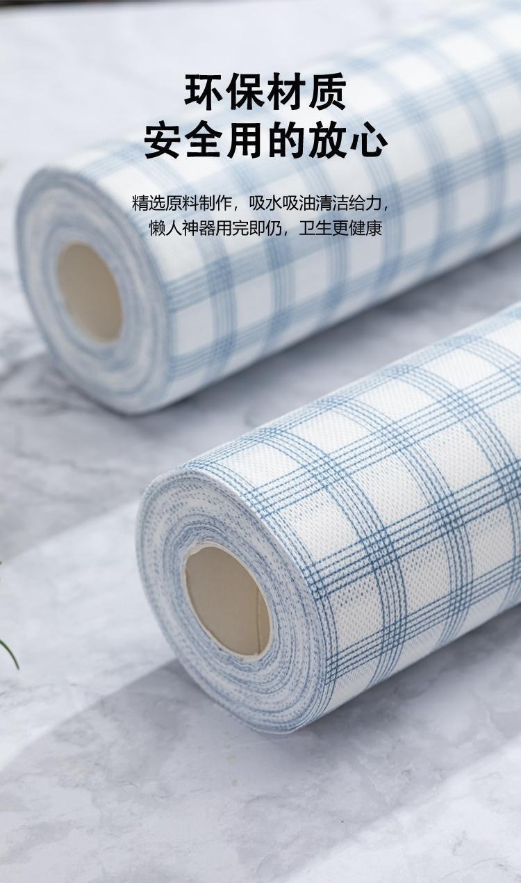 怠惰な雑巾、乾湿両用キッチン不織布使い捨て食器洗い布、家庭用クリーニング油吸収ロール紙、吸水性