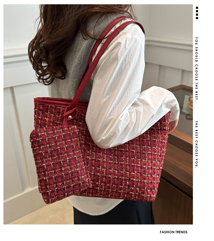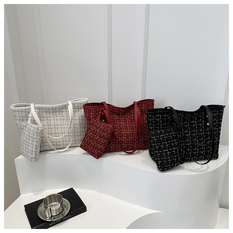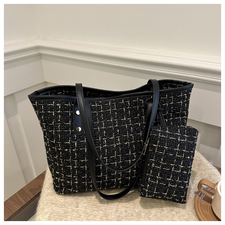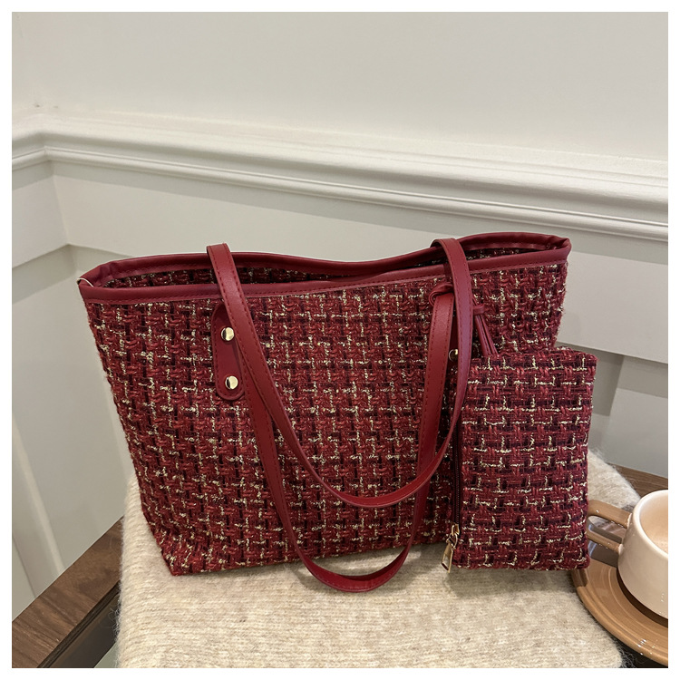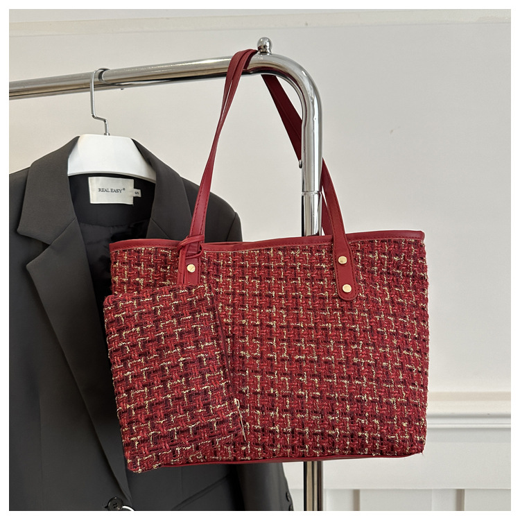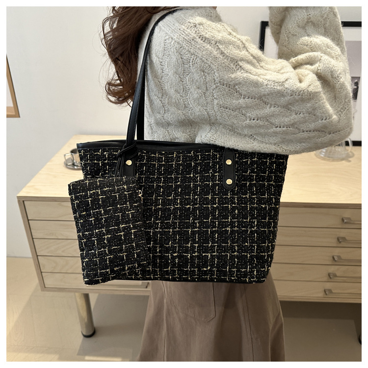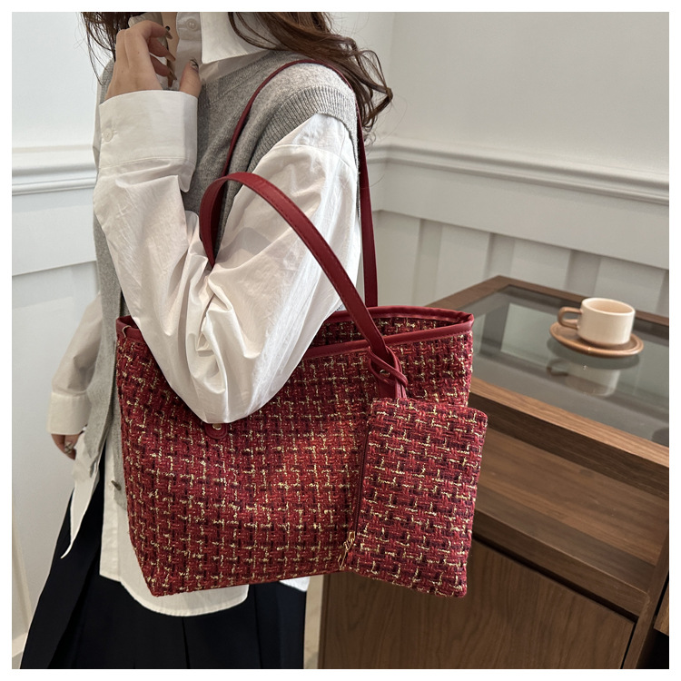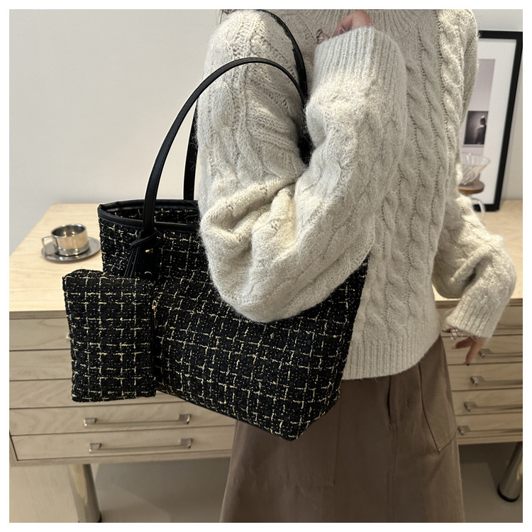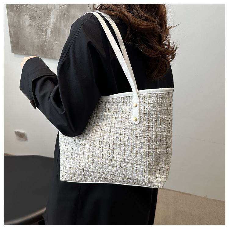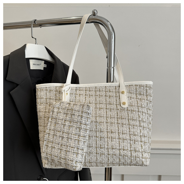 大容量衝突色格子ハンドバッグ2025今年は新型春毛が流行しています。
