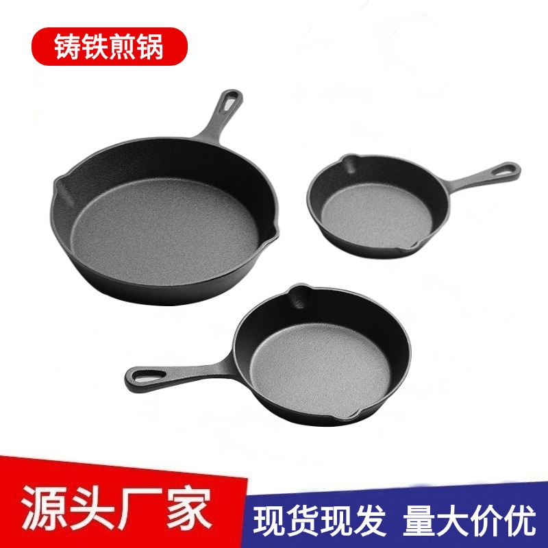 鋳鉄フライパンノンスティックフライパン銑鉄フライパン朝食鍋フライパンステーキ鍋家庭用手掴み餅鍋木柄