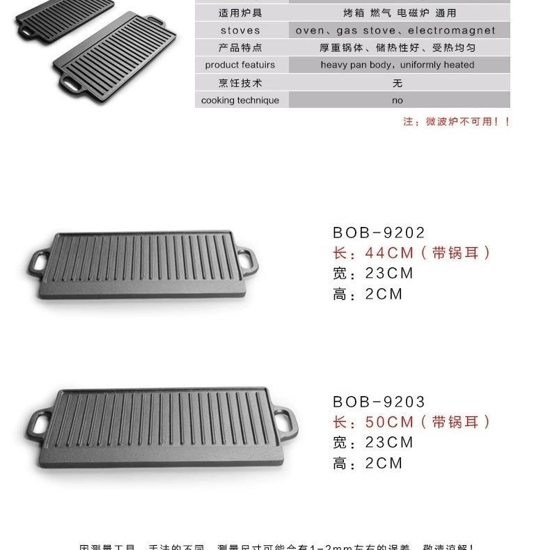 屋外焼肉皿鋳鉄鍋キャンプ両面バーベキュー皿コーティングなし長方形焼き魚皿両耳202焼き皿