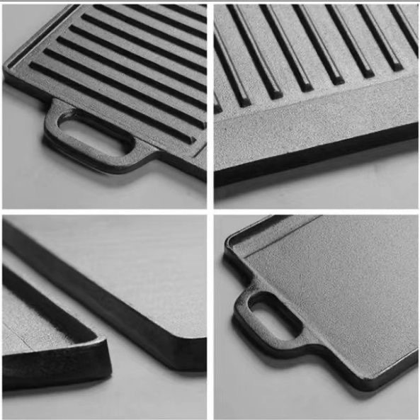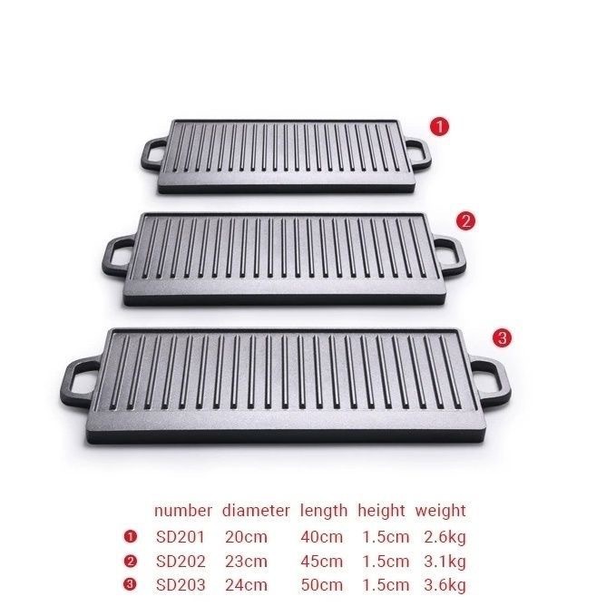 鋳鉄グリルパン 203 屋外バーベキューミートフライパン 202 ストライプ長方形厚みのあるコーティングされていない両耳鋳鉄フラットパン