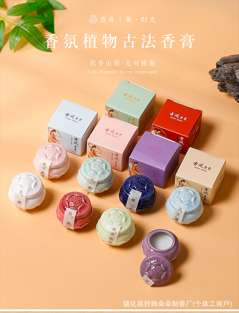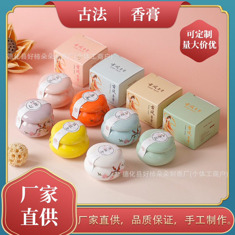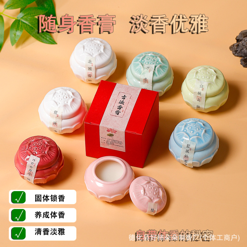 【陶磁器缶】国潮古風小蓮固体香膏十里桃花持続留香古法香膏卸売り