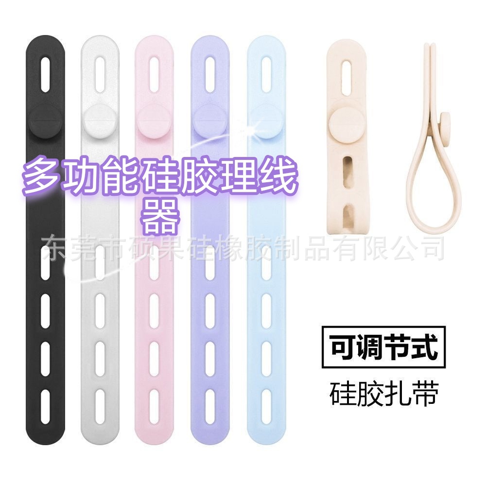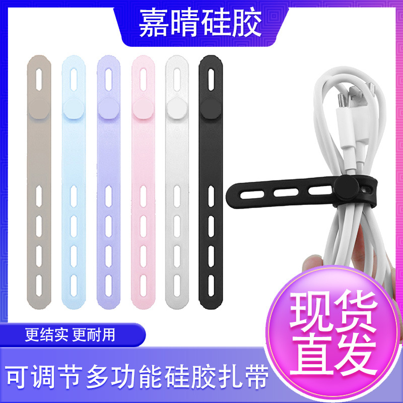 现货可调节硅胶扎带理线器数据线收纳扎带耳机绕线器固线器