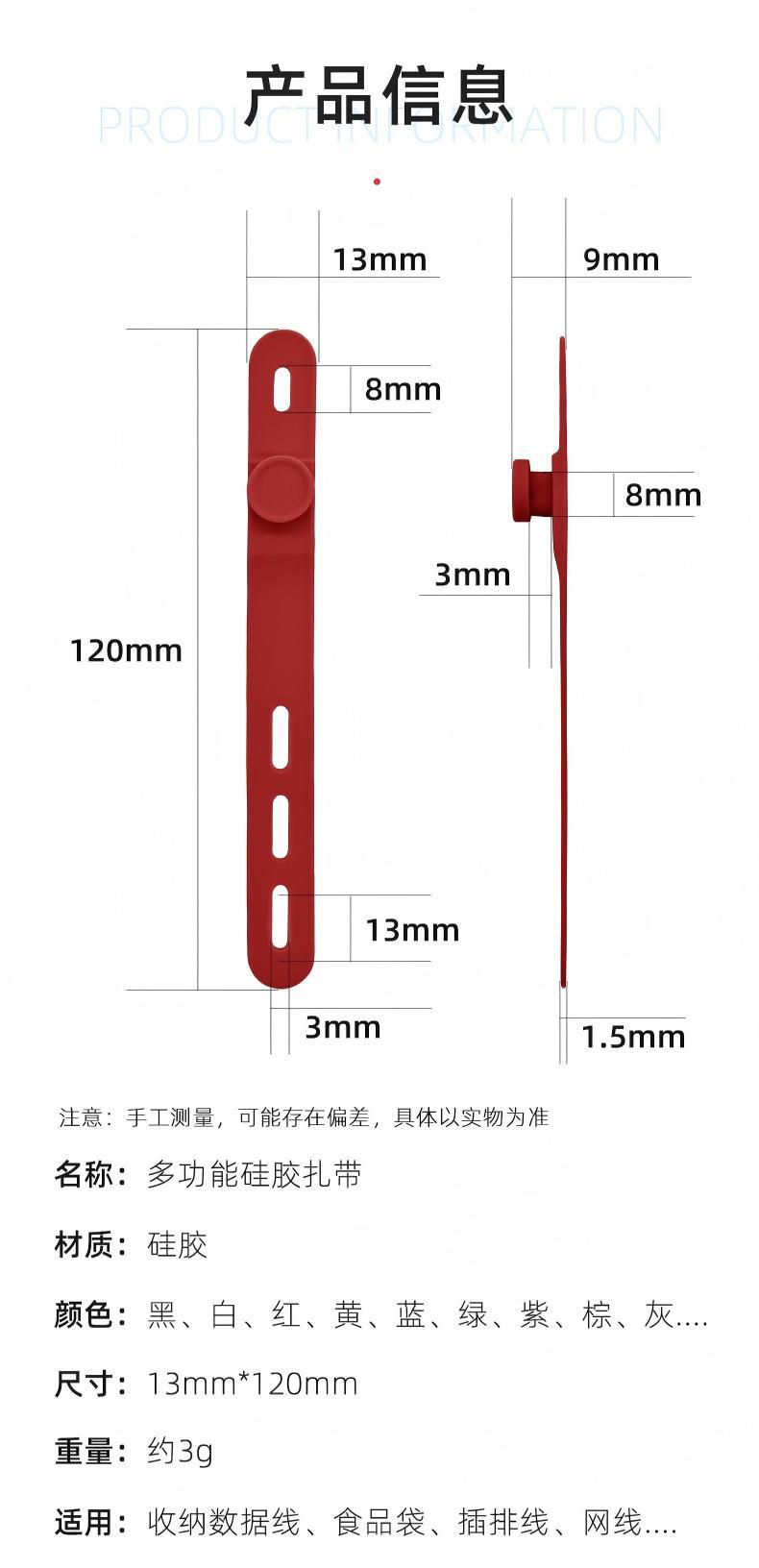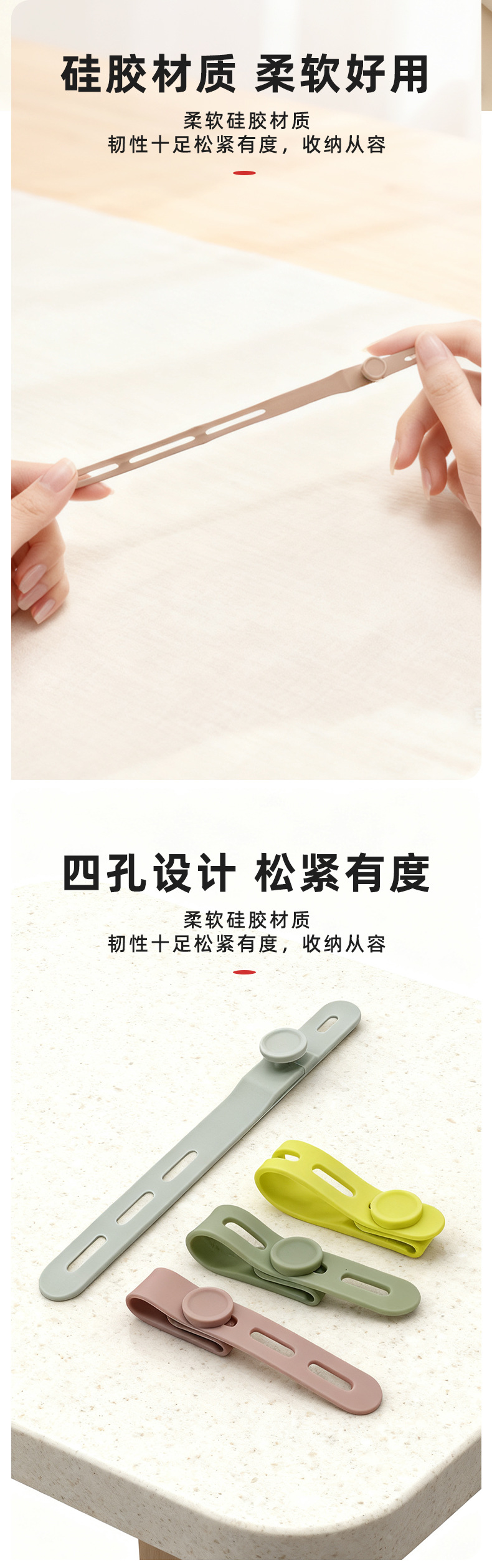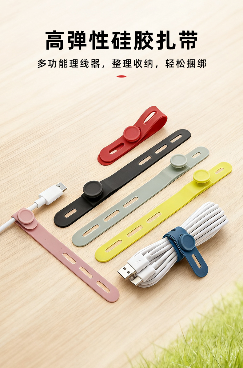 硅胶扎带三孔硅胶绑带弹力扎带便捷理线可收纳耳机数据线束线