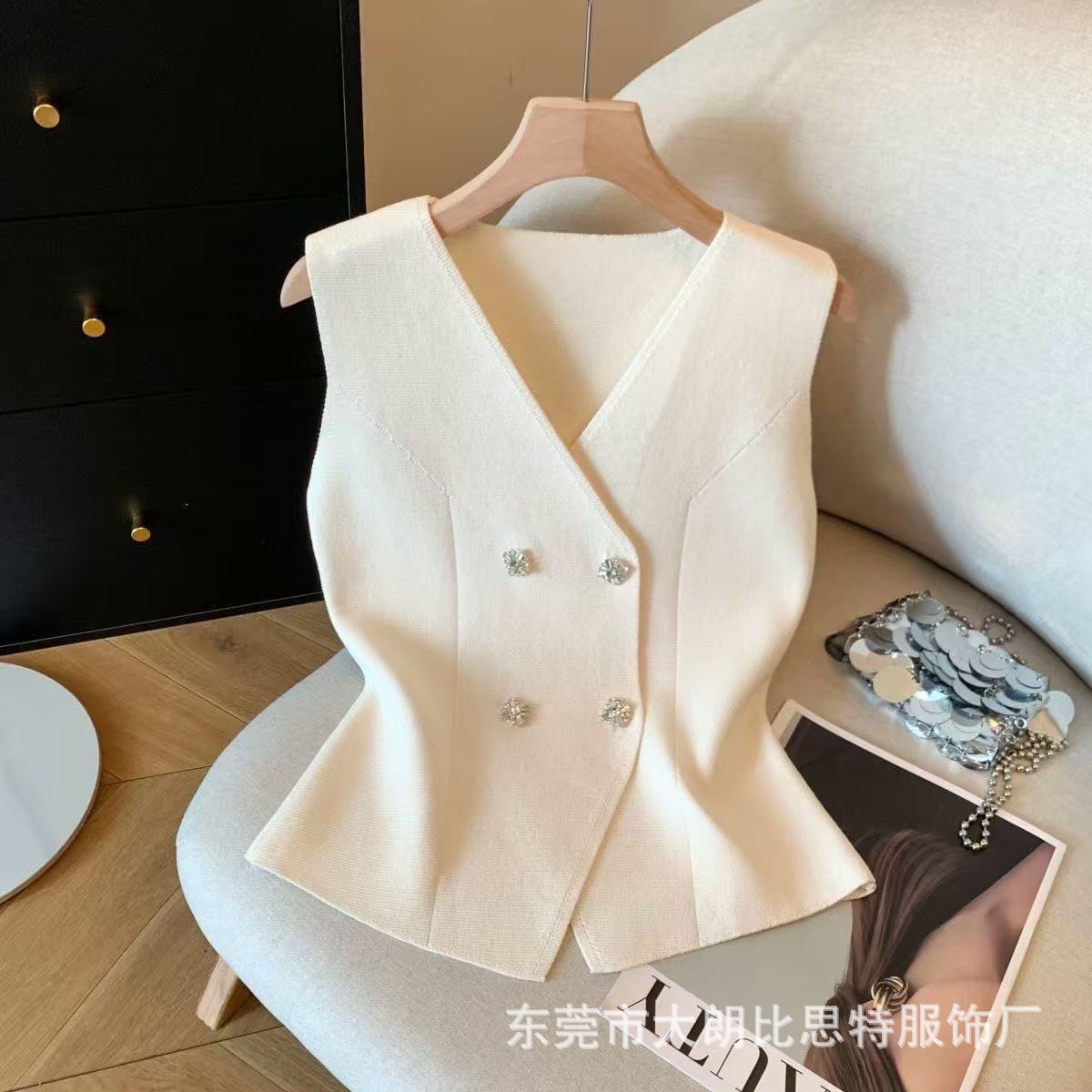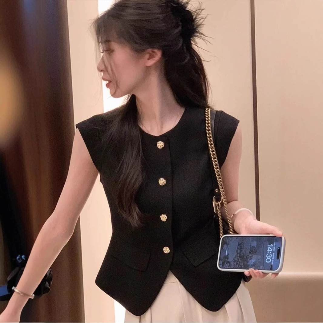 2026法式复古夏季减龄通勤洋气显白小香风V领双排扣设计百搭背心