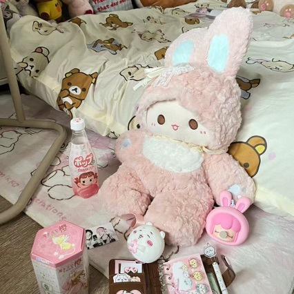 纽奇粉色兔子毛绒公仔可爱甜美少女jk萝莉塔玩偶哄睡玩偶抱枕玩具