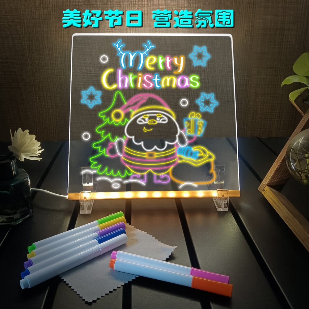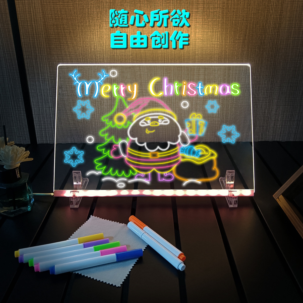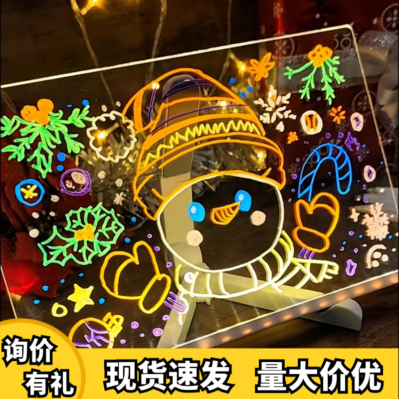 跨境爆款diy儿童发光画板可擦涂鸦透明亚克力荧光板益智绘画玩具
