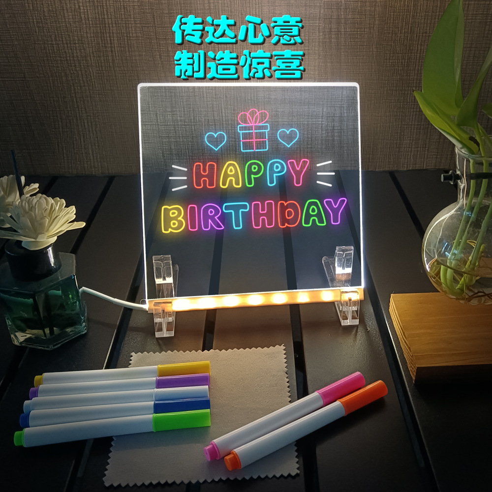 国境を越えた手描きDIY発光画板アクリル蛍光メッセージボードナイトライト雰囲気ランプ子供のおもちゃ