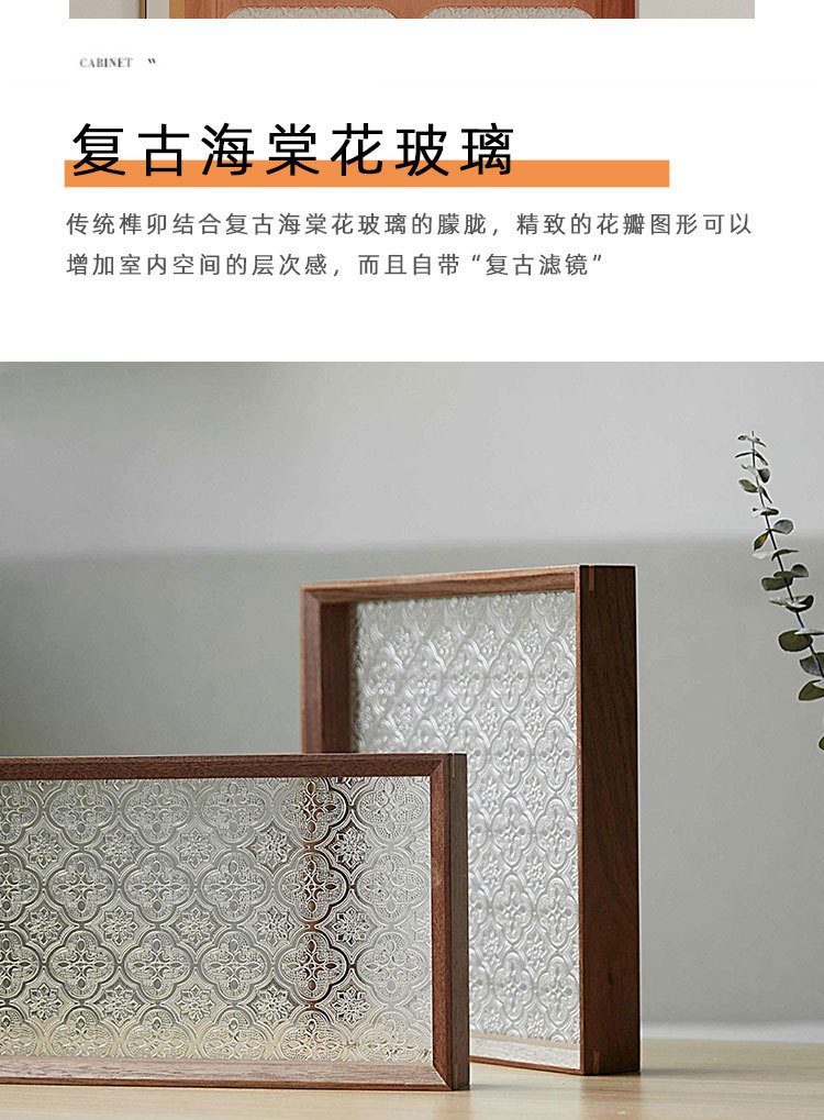 入户进门实木玄关复古海棠花玻璃隔断洗手台餐厅客厅宫格遮挡屏风