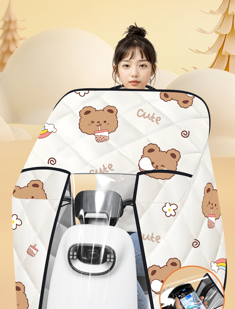 電気自動車のフロントガラスキルト、冬のベルベットと増粘、完全に囲まれたオートバイのバッテリー車のフロントガラス、暖かく耐寒性のマントスタイル