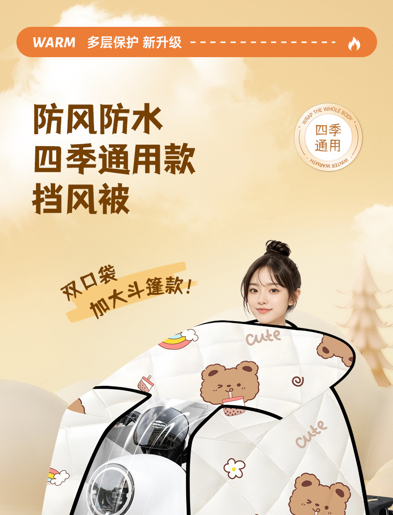 防水电动车挡风被秋冬季2025斗篷式加绒加厚保暖电瓶车防风被批发