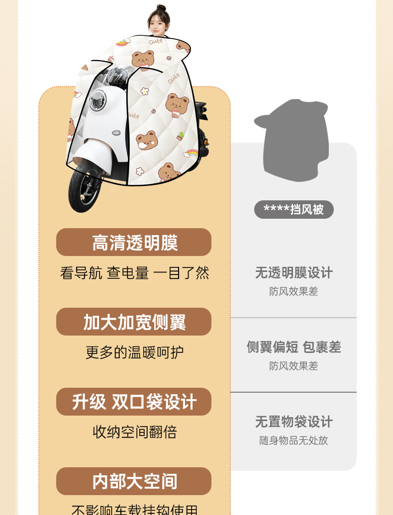电动车冬季挡风被全新钢化膜款式雨季专属防水防晒