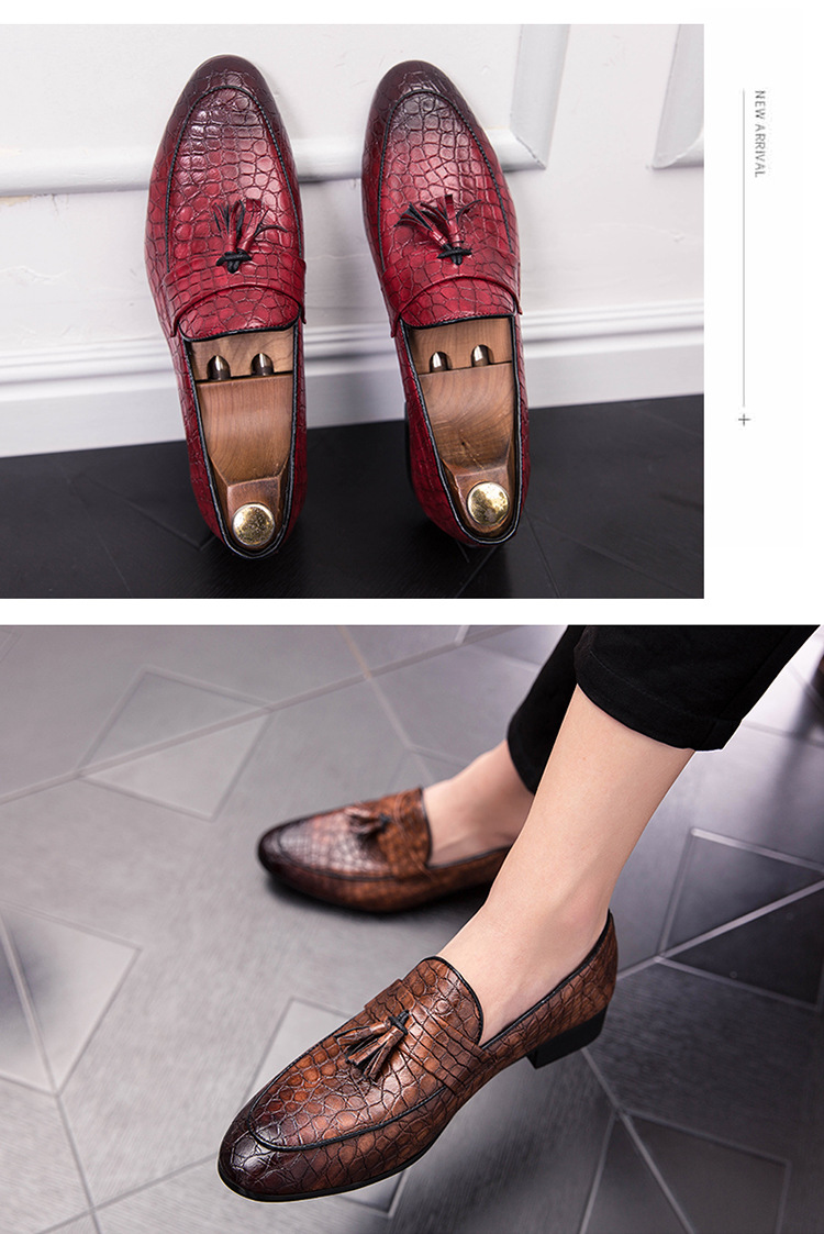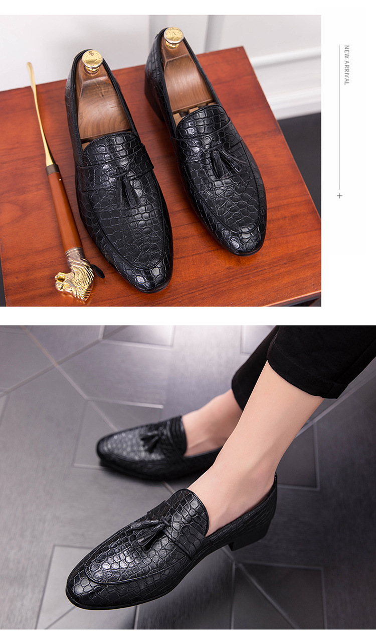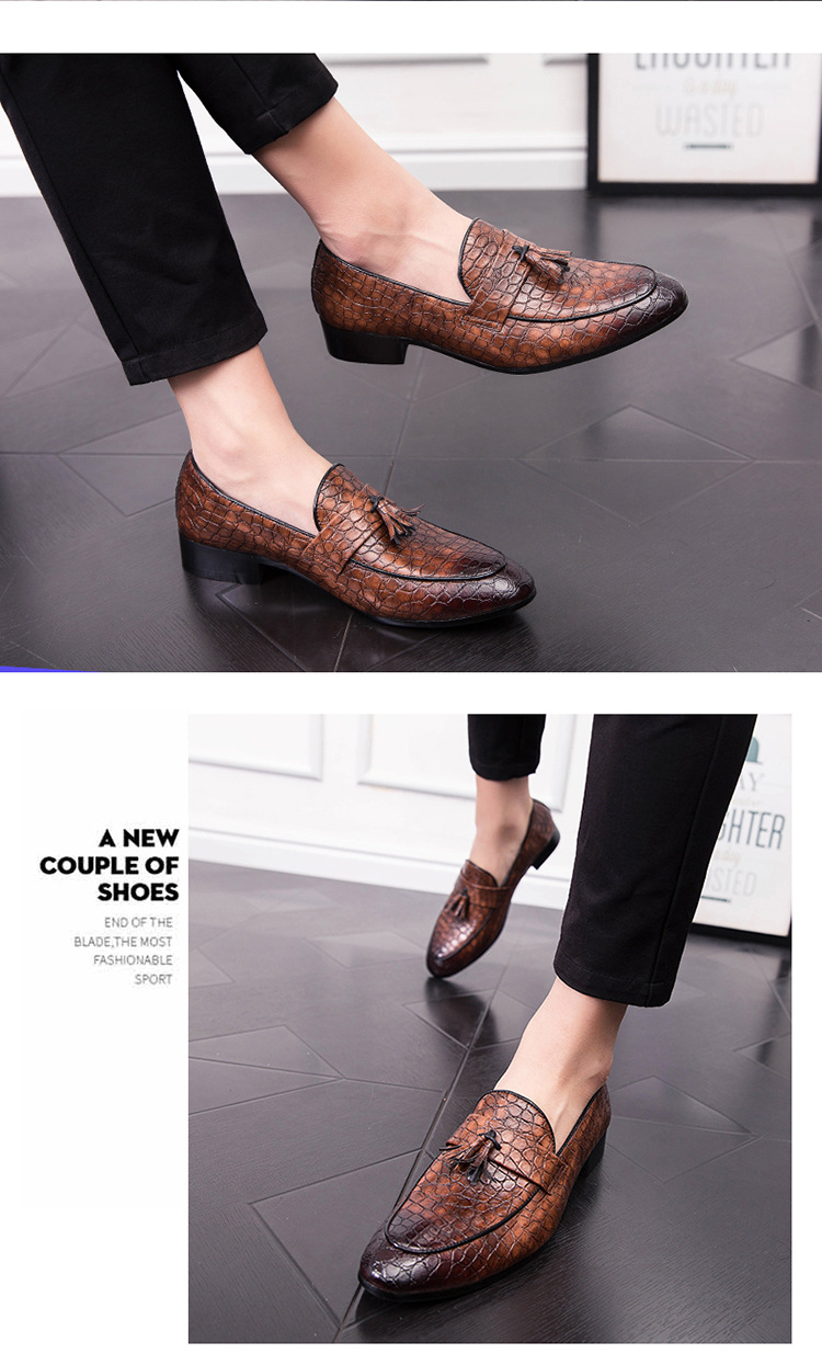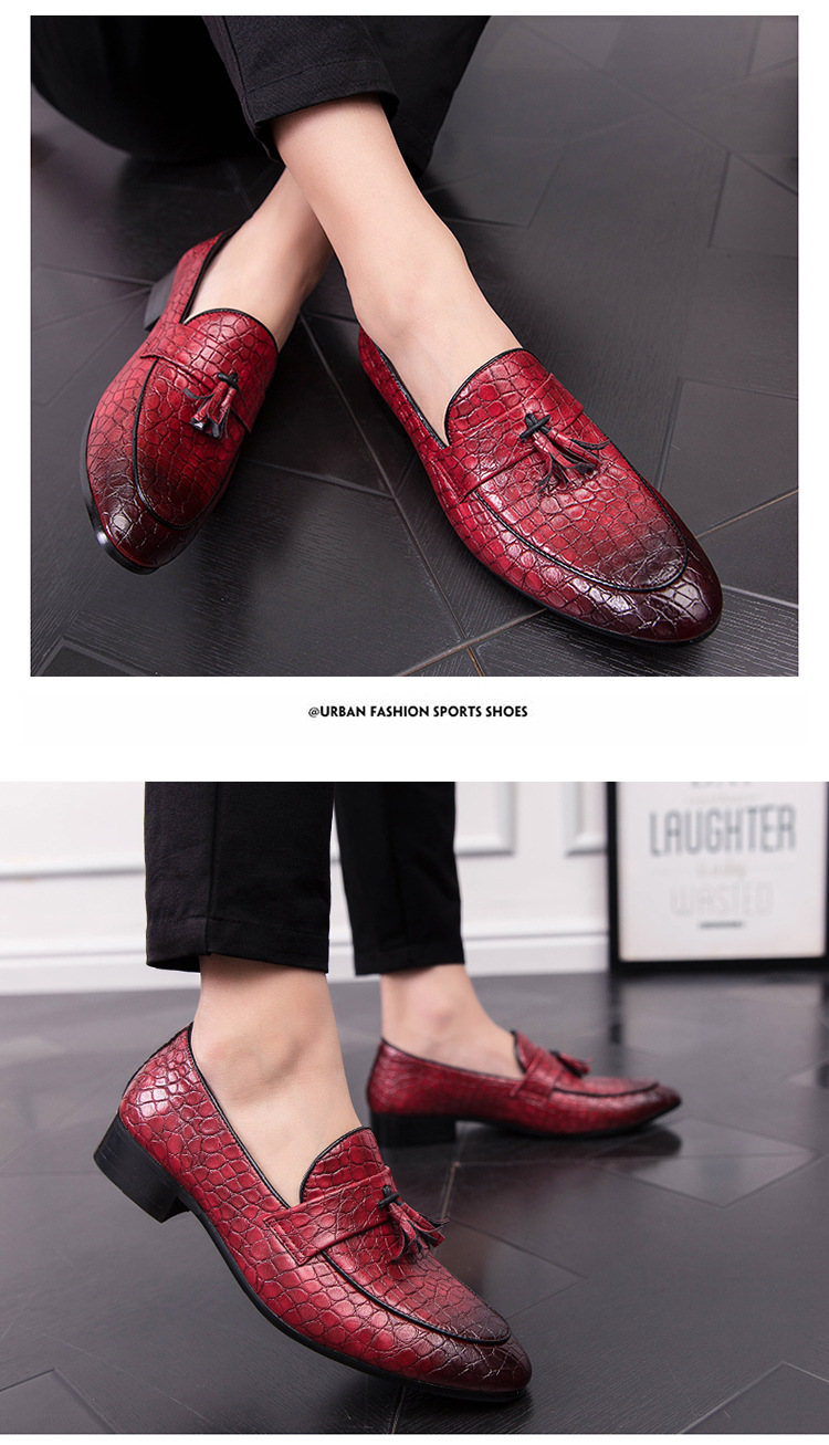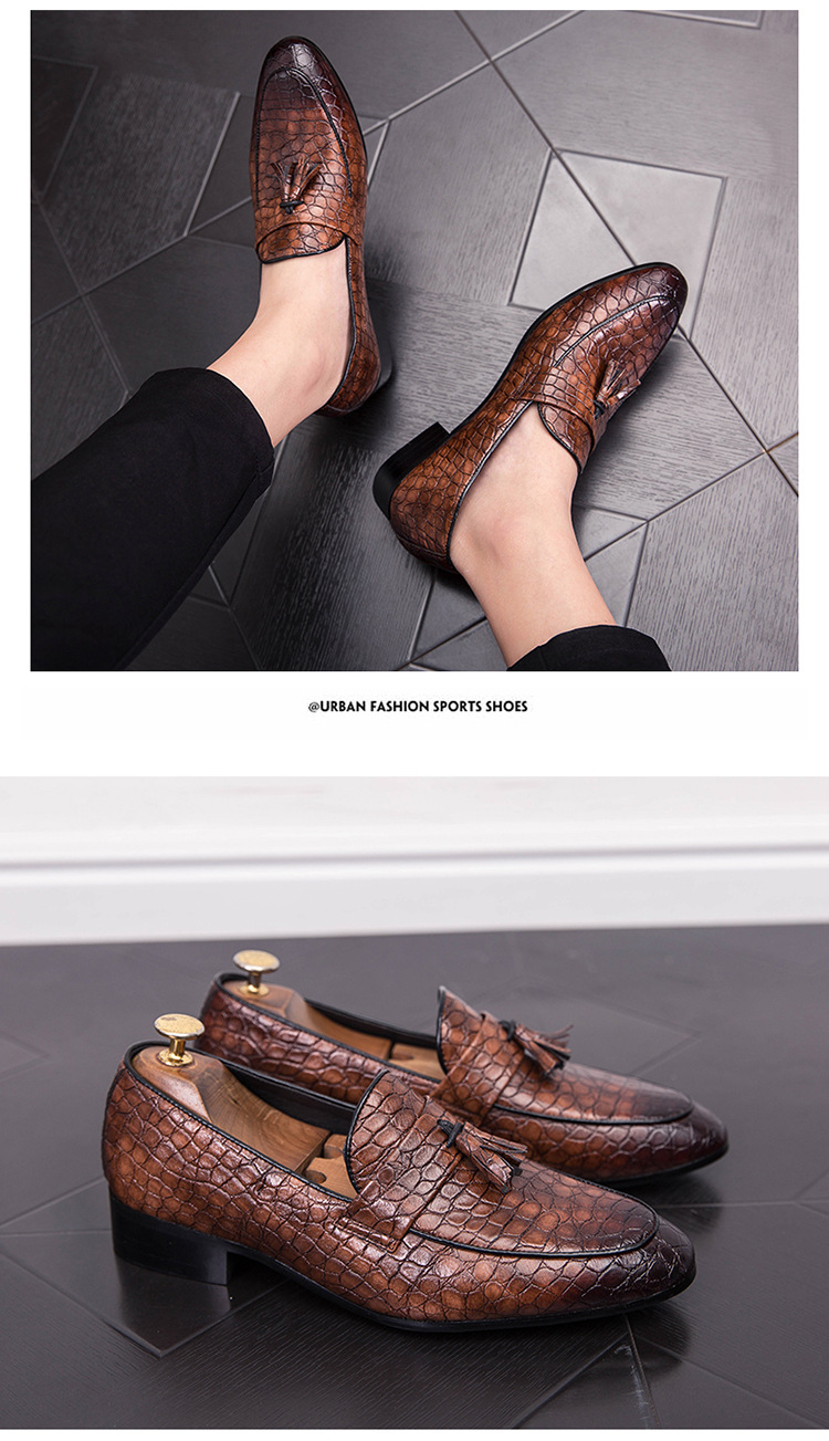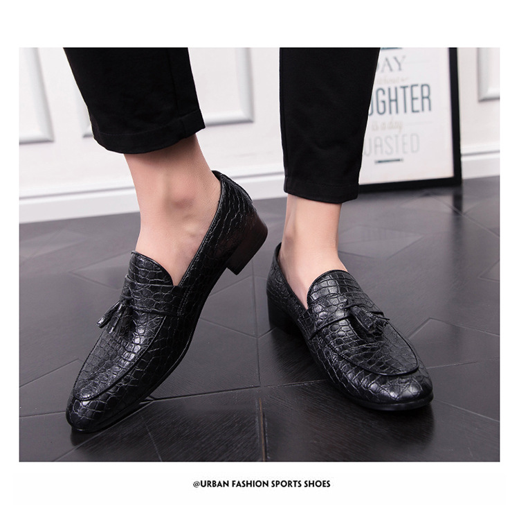 ヘアスタイリストのフリンジの先の小さい革靴は足のカジュアルな革靴のクラブの男性をかぶせます。