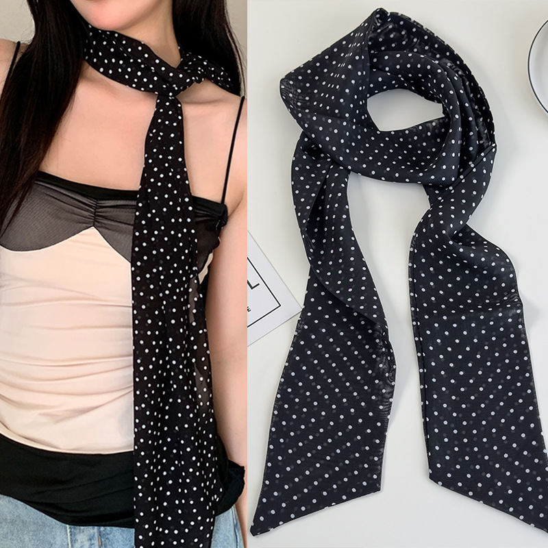 日韓の雰囲気感の黒い波点のスカーフは首のヘアバンドを結びます。