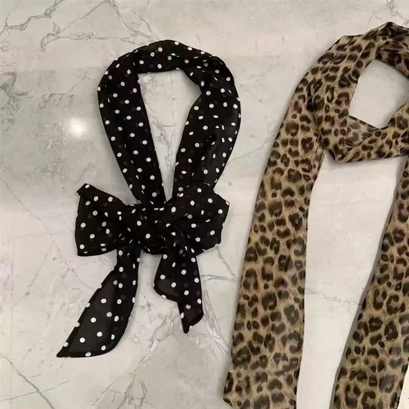 韓国ヒョウ柄の美的レトロな細い長いシルクスカーフヘアベルト装飾ファッションデザインスカーフ女性用