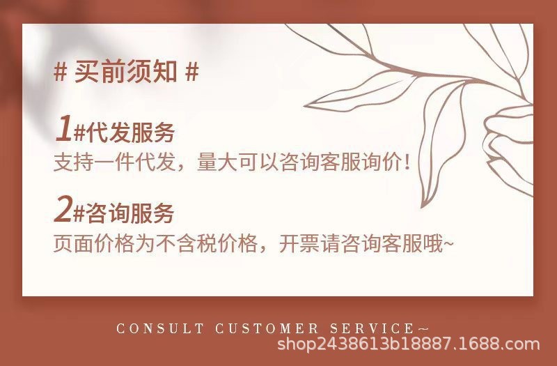 (3)售后问题:批发利润微薄,没有能力承担售后,如遇宝贝不满意,或者路上破损等系列问题,可接受换货,但是不接受退款或折价!产生的运费由买家自理!卖家不承担运费!