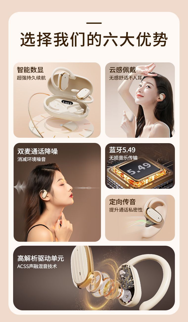 新品9Dドルビーサウンド伝導bluetoothイヤホンワイヤレスクランプ耳式高音質大音量ロング持続が耳に入らない