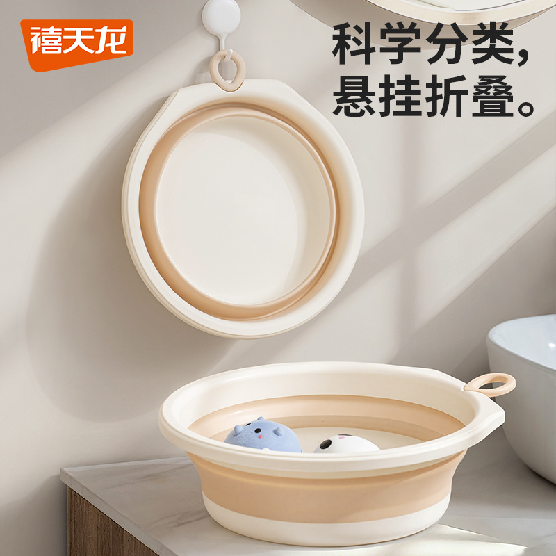 禧天龙折叠盆家用宝宝洗手洗脚旅行折叠洗脸盆壁挂可折叠加厚塑料